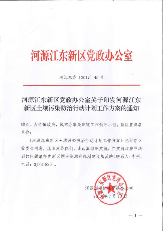 河源江東新區黨政辦公室關于印發河源江東新區土壤污染防治行動計劃工作方案的通知